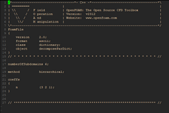 Lastly, the decomposePar, allow the user to decompose the case in different part using various methods. In this example the hierarchical method is employed, specifying how many pieces the case should be split into. This decomposition aims to parallelize the process across CPU cores, thereby speeding up the solution.